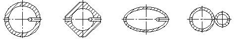 (a) 圓形 (b) 菱形 (c) 橢圓形 (d) 雙管(前后)形